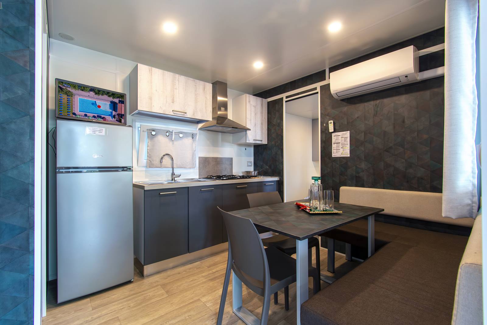 Con aria condizionataIl camping ha a disposizione case mobili Maddalena e case mobili Elba. Casa Mobile trilocale Elba 4 posti: composta da 2 camere, soggiorno con angolo cottura, bagno, veranda coperta, aria condizionata, TV, cucina attrezzata, frigo congelatore doppia portata. Casa Mobile trilocale Maddalena 4+2 posti: composta da 2 camere, soggiorno con 2 letti e angolo cottura, bagno, veranda coperta, aria condizionata, TV, cucina attrezzata, frigo congelatore doppia porta.